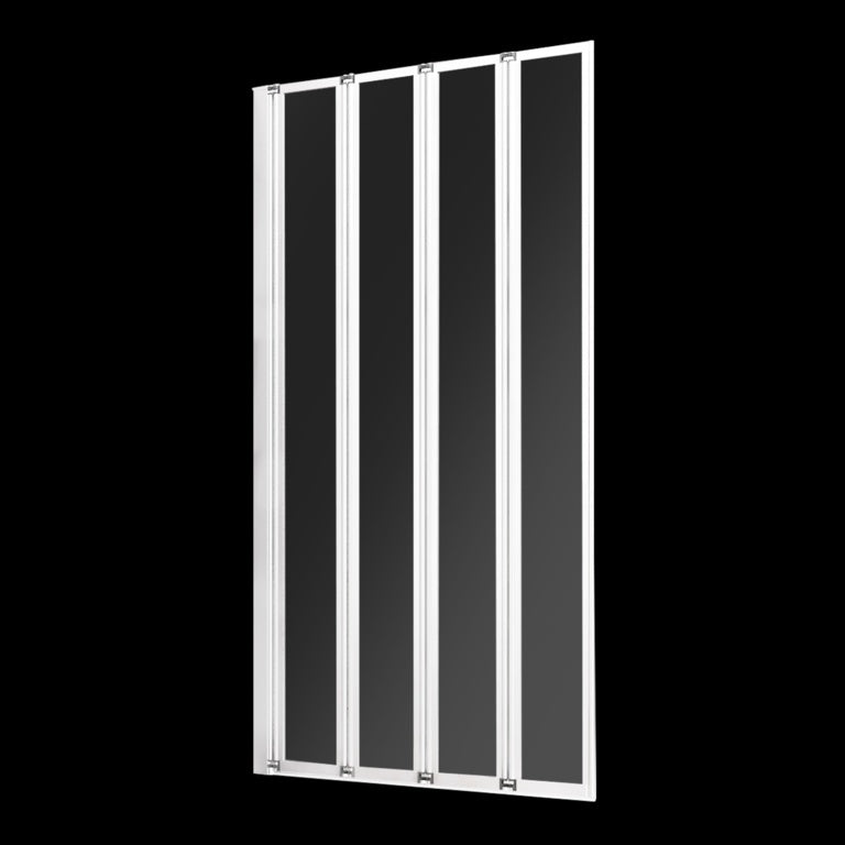 4mm clear toughened glass EN12150|White finish frame|Includes all fittings and spare seals|Height 1400mm|Free Spare Set of Seals|10 Year Guarantee|308031 SRS40 Rubber Seal Bottom of Screen|308073 SSCSC5 Screw Cup and Screw Covers|308075 SCWEC5 Chrome Wall Profile End Caps|Image for illustration purposes only
