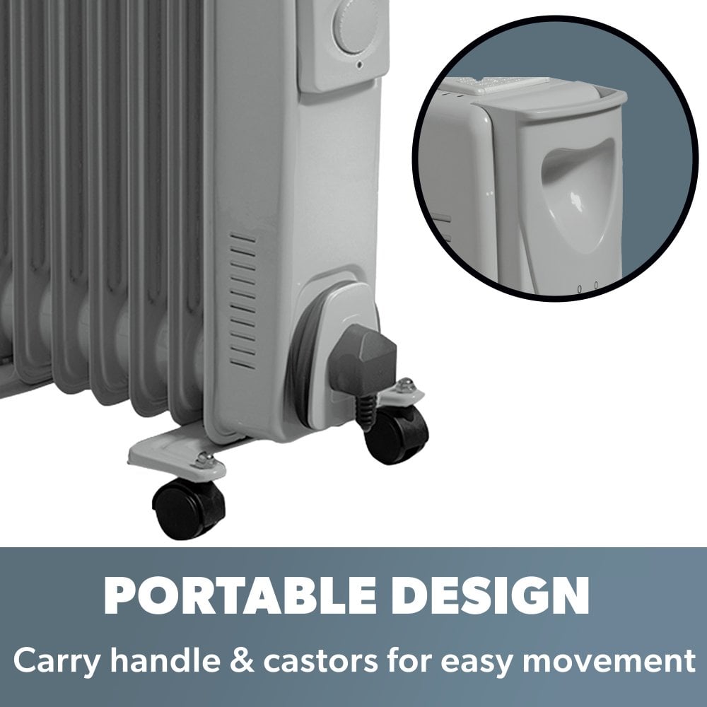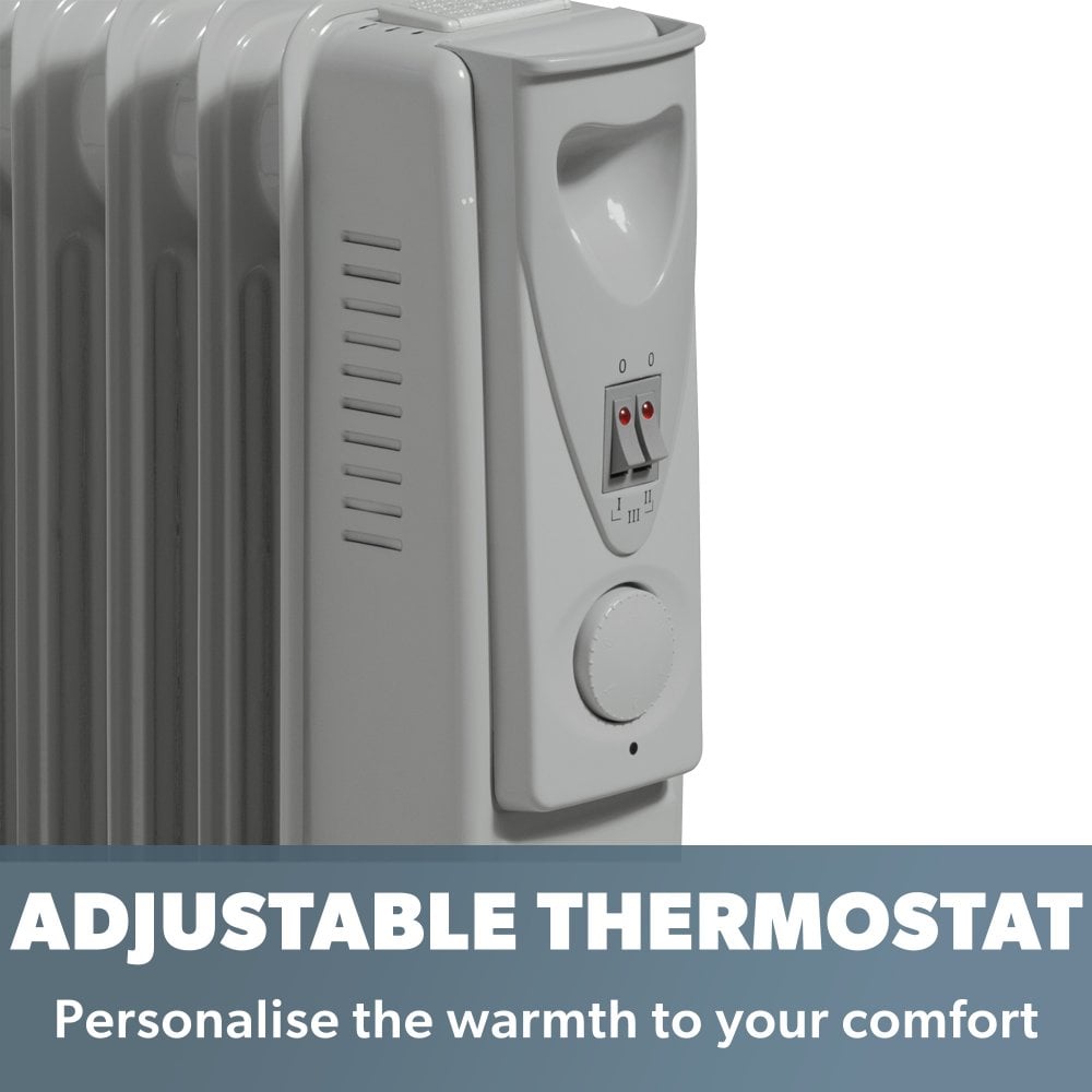 Whether facing the harsh cold of winter or needing extra warmth on a cooler autumn night, this oil-filled radiator delivers. Its sleek, compact design fits easily into any room, and its reliable performance is backed by a 3-year extended warranty upon registration.